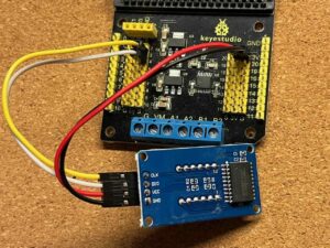 今回は「モータードライバー拡張ボード(KS4033)」を使って、マイクロビットに7セグLEDモジュールをつなぐことにします。