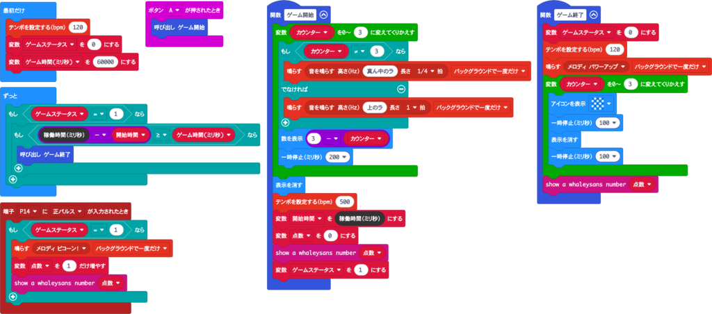 Aボタンを押すとゲーム開始です。ゲーム時間は1分に設定してあり、その間にターゲットが回ると点数が加算されます。