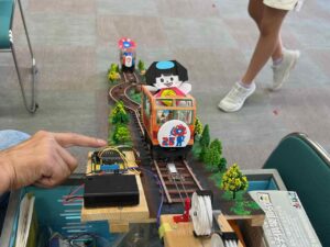 これもまた別の企画なのですが、以前このワークショップの講師陣が共同でつくった「マイクロビットケーブルカー」を、市が実施するイベントで展示することになりました。